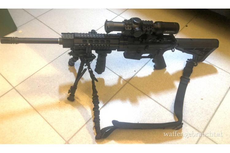 Es handelt sich um eine hochwertige Oberland Arms OA 15 M4 im Kaliber .223 in Vollausstattung, 14,5" Lauf (Vortex Strike Eagle 1-8x24 AR-bDC2, (für Nah und Fern) mit Original Montage, Vordergriff mit taktischer Lampe, Zweibein sowie 4 x 10 Schuss Magazine) - es sind auch noch 2 x 20 Schuss und 3 x 30 Schuss Magazine (Kat A) - falls Genehmigung vorhanden.