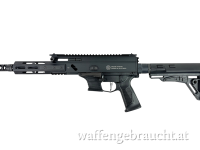 Das Gehäuse ist aus einem Stück Aluminium gefertigt und schwarz eloxiert. Auf der Ober-und Unterseite ist eine durgehende Picatinnyschiene, seitlich befinden sich M-Lok Schnittstellen um Zubehör aller Art zu befestigen. Der AR-15 Schubschaft ist aus hochfestem Polymer gefertigt. Serienmäßig ist die Waffe mit einer Klapp/- Dioptervisierung ausgestattet.