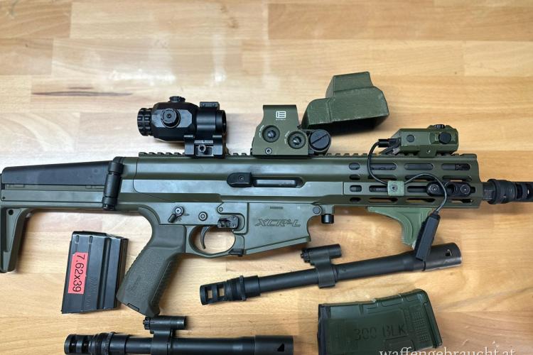 Lauftausch ist original eine Schraube lockern- neuen Lauf rein- Handfest anziehen fertig. Super pantentiertes System. 1x 20iger Mag und 1x 10er Mag (7.62x39) auch dabei..