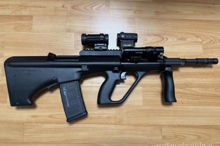Steyr AUG A3 SA Flat Top mit ausschwenkbarem Lauf.
