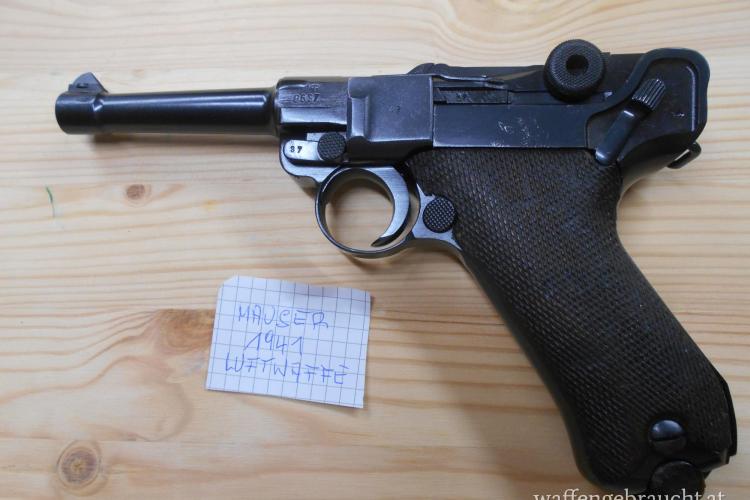 Sehr gut erhaltene 08 von Mauser für die Luftwaffe. Schiwisicherung. Der lauf ist 1a aber er wurde getauscht! Die Waffe ist abgesehen von getauschten Lauf und dem Magazin nummerngeich.