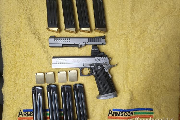 Biete hier für einen Vereinskollegen eine Bull in .40 S&W mit 9mm Wechselsystem inkl Holosun Optik mit Zubehör und Koffer (8 Magazine [4 x .40 S&W und 4x 9mm] zum Preis von € 4.500,-- die Pistole mit Wechelsystem ist neuwertig.