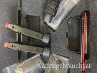 - Original Koffer, Putzzeug, 2 Magazine inkl. Verlängerung +2(17 Schuss) sowie normale Magazinböden (15 Schuss), 3 austauschbare Griffrücken S.M,L