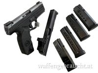 • Komplettpaket mit Pistole, Ersatzschlitten, 4 Magazinen & Koffer
