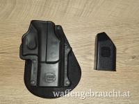 Mit dabei sind noch 4 Magazine, davon 2 mit Verlängerung, 1 Ladehilfe und 1 Fobus Paddle Holster. Keine Box.