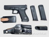 Angeboten wird eine Glock 17 Gen 1 in einem sehr gut erhaltenen Zustand. Teil des Sets ist ein hochwertiger Lederholster des bekannten Herstellers Sickinger inklusive dazugehöriger Magazintasche und eines Speedloaders. Weiters kommt ein Originalmagazin der ersten Generation hinzu.