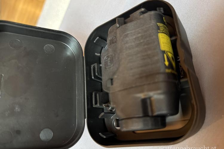 Der GTL 2X ist ein qualitativ hochwertiges Produkt mit einem roten (sichtbaren) Laser, der sich präzise auf die Trefferlage der Waffe einstellen lässt. Der Laser funktioniert entweder unabhängig oder in Verbindung mit dem Xenonlicht. Licht und Laser werden durch einen zentral platzierten Modusschalter manipuliert. All dies ist in einem hochrobusten Polymergehäuse untergebracht. Der Montagemechanismus ermöglicht es dem Benutzer, die Lampe in wenigen Sekunden ohne Werkzeug anzubringen und abzunehmen. Ein Hartpolymer-Aufbewahrungsbehälter, eine ersatz LED und ein Einstellwerkzeug für den Laser sind im Lieferumfang dieses GLOCK Tactical-Lichtsets enthalten.