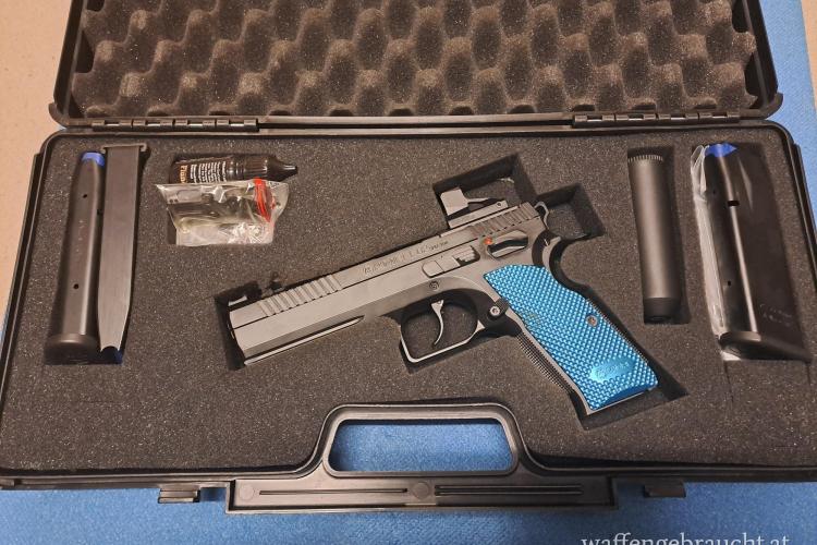 | Zubehör | 2..Paar Griffschalen (Ergo Palm), 3 tlg Federsatz (11,12,13 lbs), Holster |