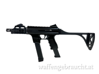 Sehr schön gefertigte halbautomatische Pistole/Selbstladegewehr mit einem aus dem vollen gefrästen Stahlgehäuse. (Unseren Wissens nach, die Einzige!) Kompatibel mit Glock Magazinen. Ausgestattet mit einem Quadrailvorderschaft, Klappschaft und beidseitig bedienbarer Sicherung. Der Ladehebel kann links oder rechts der Waffe angebracht werden. Des weiteren besteht die Möglichkeit ein Reservemagazin im Griffstück anzubringen.