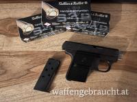 FN Baby CZ Alpha cal. .25 ACP CZ Duo CZ Mod. DUO CZ Model DUO CZ "Z" CZ Model "Z" CZ Mod. "Z" Walther Mod. 9 Model 9 tschechisch Taschenpistole 6,35 6.35 mm brüniert schwarz Lady Gun Ladygun Handtaschenpistole Selbstverteidigung kleine Pistole so groß wie eine Dose Pfefferspray passt vermutlich in eine Zigarettenschachtel