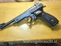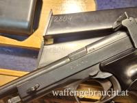 Biete aus meiner Priv Sammlung: Diese Margolin Sportpistole in Nahezu Neuwertigem Zustand an. ( lediglich die linke Griffschale hat in oberen Bereich einen kleinen Riss.). Sie ist im org. Holzkoffer mit 2 stk Nummerngleichen Magazinen zur Pistole - eher sehr selten zu finden. ( Meist sind ziemlich runter Gerockte Eisen mit null org Zubehör) - In diesem Zustand sicher Sammlerwürdig.