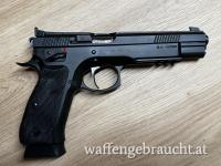 Diese 6 Zoll Longslide-Pistole ist im Gegensatz zur Waffen-Oschatz CZ Sport II auf der Basis eines CZ 75 SP01 Shadow Griffstück aufgebaut. Das längere Dustcover mit Picatinny-Schiene verbessert nochmals die Gewichtsverteilung. Der feinst- überarbeitete und abgestimmte Matchabzug verfügt über einen einstellbaren Triggerstop und "bricht" wie Glas.