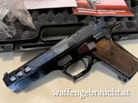Halbautomatische Pistole mit geometrischem kurzem Lauf. Die hochwertigen Materialien (aus dem vollen herausgearbeitet) und die einmalige Fertigungsqualität machen diese Waffen zu absoluten Wettkampfwaffe. Der Rahmen ist aus einer besonders leichten Aluminiumlegierung hergestellt. Lauf, Schlitten und Bedienteile aus Spezialstahl. Der besondere Winkel des Griffes gibt diesen Pistolen ein einmaliges Schußverhalten. Durch den einstellbaren Singel-action Abzugsmechanisums und die Verstellmöglichkeiten der Visierung ist die GT Serie von Pardini eine absolute Präzisions und Sportwaffe. Bei allen Pistolen ist eine gute Munitionsverträglichkeit mit allen Munitionssorten Namhafter Hersteller gewährleistet. Das Magazin kann mit beiden Händen durch ein Magazinhaltekopf entnommen werden. Finish: Alle Stahlteile sind gehärtet und verchromt oder brüniert. Alle Aluminiumteile sind eloxiert. Abzugs - und Visier-Einstellung sowie die Realisation gemäß dem Standard von Wettkampf- Waffen sind für diese Pistolenserie eine Garantie für unübertreffliche Präzision.