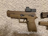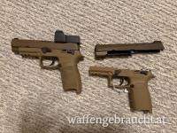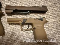 Verkaufe eine P320 mit offener Visierung und eine Wechselsystem Schlitten, Abzug, RedDot(SigSauerRomeo one) und Griffstück. 2 Koffer 5 Magazine