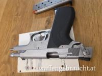 Die Waffe stammt aus einem gepflegten Haushalt und wurde in den letzten 20 Jahren keine 300 Mal geschossen (Schrankwaffe). Der technische Zustand ist daher hervorragend, der Lauf ist spiegelblank. Das Satin-Stainless-Finish ist sehr gut erhalten.