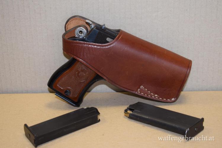 Zubehör: Insgesamt 3 Magazine, Lederholster, geeignet zum Führen.