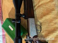 Biete wegen Überstand sehr schönen Blaser Repetierer mit Kurzverschluss im Kalieber .300 Win. Mag. Mittels Schwenkmontage ist ein Meopa Zielfernrohr mit Leuchtpunkt montiert. Die Waffe besitzt ein Schaftmagazin, Pistolengriffkäppchen mit Wildmotiv, sowie Magnaport.