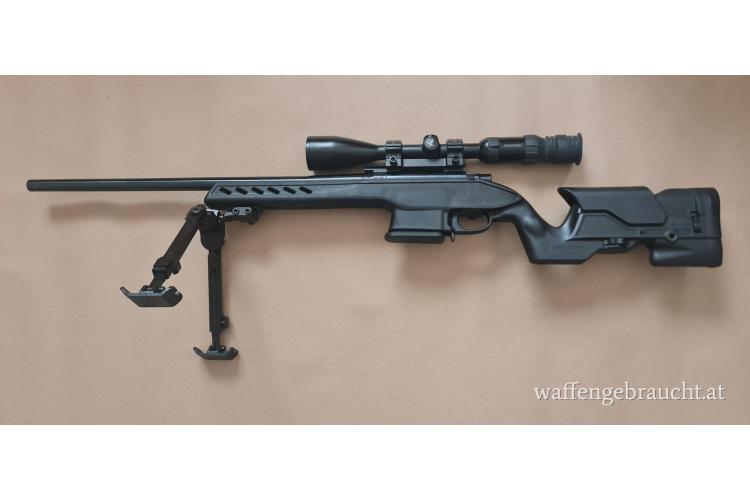 Gut erhaltenes und gepflegtes Gewehr in Kal 0,308. Für Präzissionschiessen verwendet, speziell 100 m. Schaft in Polymer von Archangel mit anpassbarer Wangenauflage, sehr angenehm zu verwenden. Beinhaltet ein sehr stabiles Zweibein von Fortmeier und einen 7 Schuss Magazin.