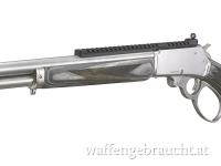 Das zeitlose Design mit polierter Edelstahloberfläche, grauem Schichtholzschaft, poliertem Verschluss und Mündungsgewinde vereinigt sich in diesem hochwertigen Unterhebelrepetierer.