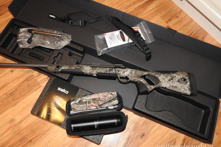 neue OVP SAKO S20 Hunter True Timber Strata Camo 300WinMag. mit Zubehör Schalldämpfer , Harris Zweibein , orig. Gewehrriemen