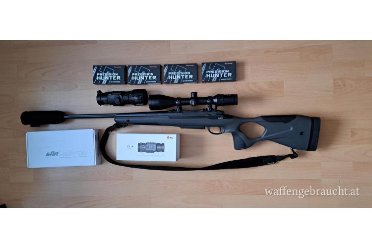 Verkaufe komplett Set Sako S20 mit Meopta 3-12 ×56 R1r Schalldämpfer ERA Silencer mit Neopren Schutzhülle. Wärmebildvorsatzgerät Infiray CL42 und sämtlichen Zubehör. 80 Schuss Hornady Precision Hunter 6.5 Creedmoor 143gr ELD-X