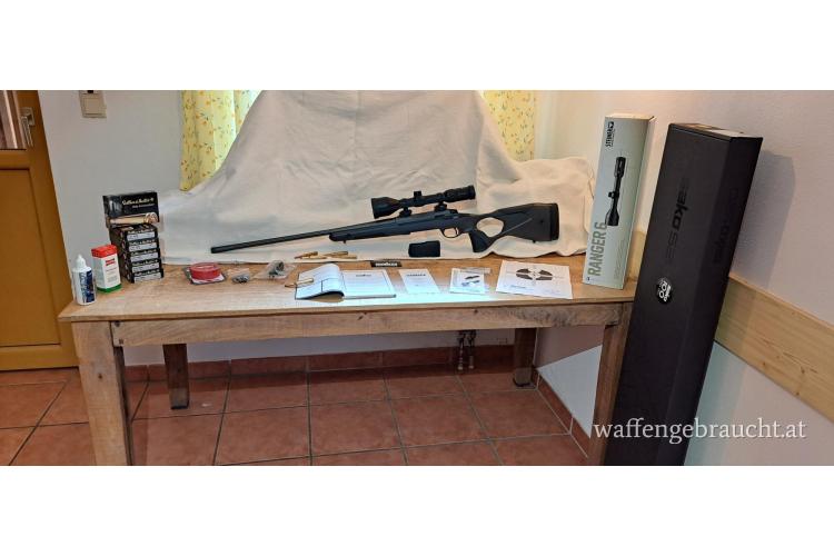 Die Waffe wurde inkl. des Einschießens nur 15 mal und das nur am Schießstand abgefeuert. Sie hat nie das Tageslicht, den Wald oder sonstiges gesehen. Alle auf den Fotos ersichtlichen Objekte, Zubehör und Originalverpackungen sind im Preis inbegriffen.