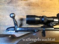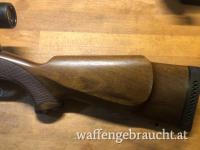 Sehr guter Gesamtzustand, Lauf spiegelblank, Schiebesicherung, Klappdeckelmagazin 5 Schuss, trockener Einabzug, Lauflänge ca. 58cm, Gesamtlänge ca. 112 cm, Schaftlänge ca. 35,5 cm mit BSA Gummischaftkappe, das Korn fehlt.