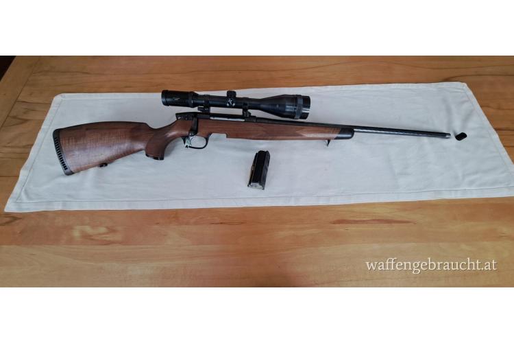 Ich trenne mich wegen Überbestandes von meiner Steyrer 7 mm RemMag. Ich habe sie vor allem zur Rotwildbejagung eingesetzt — eine Jagdart, die ich wegen eines Revierwechsels kaum mehr ausübe. Ich habe bei Beauftragung des Gewindeschneidens bei Büma Enengl auch die Kürzung des Laufes von 65 auf 60 cm durchführen lassen, was die Waffe deutlich führiger gemacht hat — ohne jeden Präzisionsverlust bei Schüssen bis 300 Meter, wie am Schießstand Wr. Neustadt mehrfach nachgewiesen wurde.