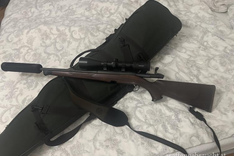 Verkaufe eine Steyr SBS CL2 mit französischen Stecher im Kaliber .308 Win mit A Tec Optima Over-Barrel Schalldämpfer u A-Lock Schnellverschluss montiert mit Kahles Helia 2,4-12x56i im Abs 4 Dot. Montage: Leupold Weaver