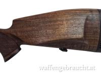 Hochwertige Jagdbüchse aus österreichischer Fertigung in der Luxus-Ausführung mit klassischem Holzschaft und montiertem Swarovski Habicht 8x56 Zielfernrohr. Diese Kombination steht für Präzision, Zuverlässigkeit und hervorragende Dämmerungsleistung.