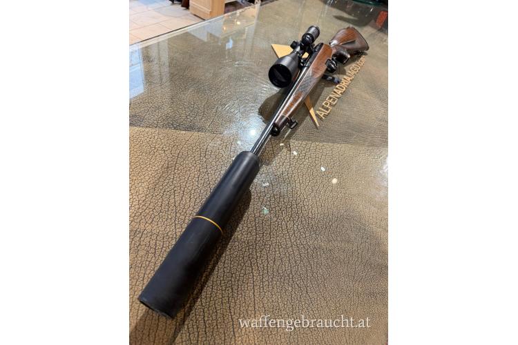 Klassische Steyr Mannlicher Mod. M in 30-06 inkl Zeiss DIaviri 3-12x56 mit Lecuhtpunkt, Montiert auf Steyr Orig. Schwebkmontage 30mm Ring. Gewinde M14x1 mit Beschuss inkl Stalon XE Schalldämpfer. Waffe wurde überprüft und eingeschossen.
