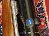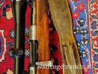 Ursprünglich war es ein 03 er dem ein neuer 243 Win Lauf eingelegt wurde. Der original Schaft wurde komplett überarbeitet und mit einem Kaisergriff versehen, zu dem wurde ein neues Zeiss DiavariVictory 3-9x42 Abs. 4 in der 2 Bildebene mittels neuer Suhlermontage montiert. Der Abstand zum vorderen Abzug beträgt ca.37cm.