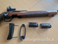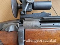 Steyr SSG69 mit schönem Holzschaft, mit Riemenösen ohne UIT Schiene, und neuem Abzugsbügel, mit Diopter , Korntunnel, 5 Schuss Magazin neu, Magazin zum Einzelladen, verstellbare Schaftkappe, und 1 Originale Steyr Schaftkappenverlängerung.