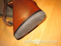 Zustand: gut und voll funktionsfähig, mit oberflächlichen Gebrauchsspuren speziell an der Brünierung des Laufes, blanker Lauf mit sehr guten Feldern und Zügen. Einige Druckstellen und leichte Kratzer im Schaftholz. Der Gummiteil am oberen Ende der Schaftkappe löst sich. Der Zustand des ZF ist insgesamt sehr gut.