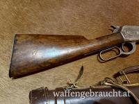 Die Lauflänge beträgt 24 Zoll/61cm und die Schaftlänge beträgt 33,5cm. Die Winchester stammt aus einer Sammlung und ist Online verfügbar.