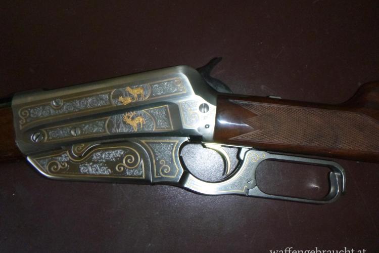 Die Waffe wurde als Jubiläumsmodell mit einer Auflage von nur 4000 Stück gefertigt und echte Goldeinlagen. Sammler sagen einstimmig dass die für Winchester von Miroku gefertigten Exemplare wesentlich präziser und weicher laufen als die in der USA gefertigten.