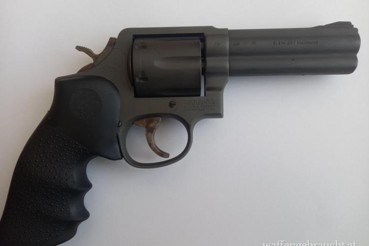 S&W Mod 581, Phosphatiert, Rarität, Lauflänge: 4", Sechsschüssig, buntgehärteter Abzug ,fixes Visier, Gummigriffschale mit Fingerrillen, gebraucht, sehr guter Erhaltungszustand, Lauf innen blank, geringer Abrieb, Belgischer Beschuß