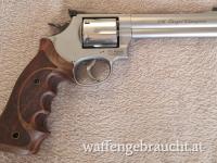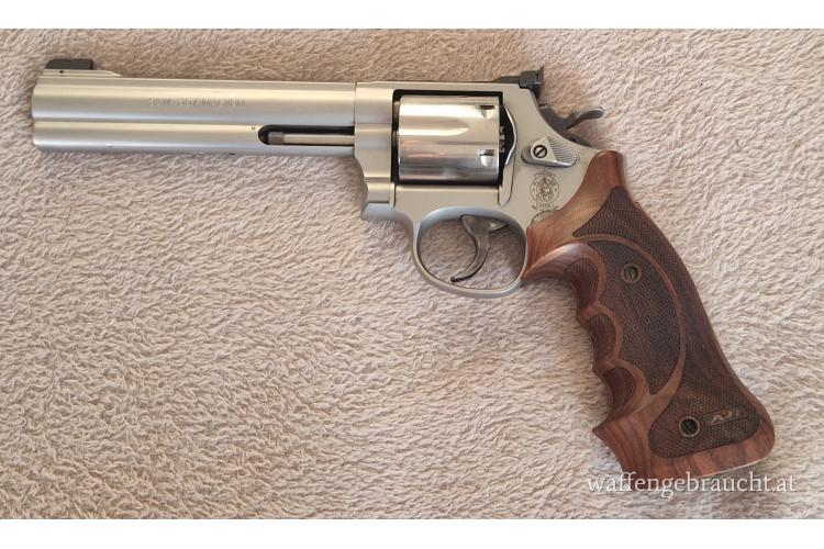 Smith & Wesson 686 / 5 im sehr guten Zustand. Der S&W hat original Nillgriffschalen mit Fingerrillen für links und rechts Schützen.