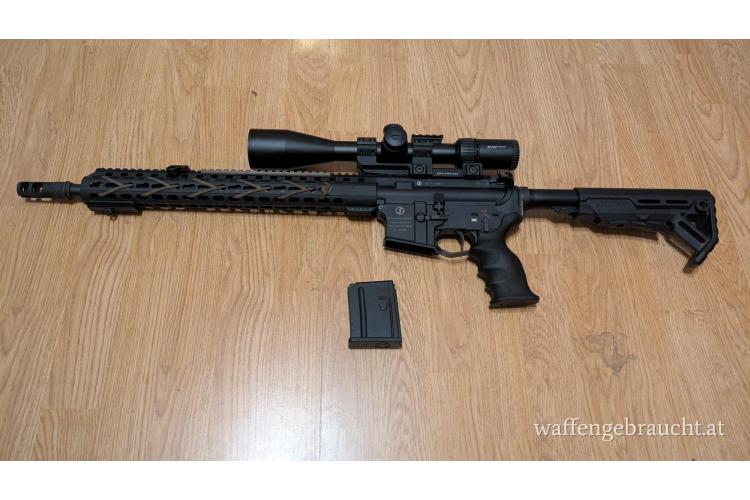 Verkaufe eine Schmeisser AR15 mit 16,75" Lauflänge. Wurde für 100m und 200m verwendet und hat immer absolut störungsfrei funktioniert.