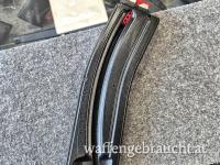 Ein integrierter Ladehilfe-Daumenschieber erleichtert das Befüllen des Magazins erheblich. Wichtiger Hinweis: Der Daumenschieber darf nur verwendet werden, wenn sich Munition im Magazin befindet. Wird er leer nach unten gedrückt und wieder losgelassen, kann dies den Zubringer beschädigen – in diesem Fall erlischt die Garantie.