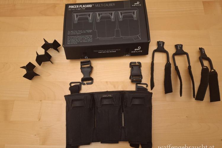 Verkaufe Pincer™ Placard Multi-Caliber Triple Mag Pouch von Agilte mit allem Zubehör inklusive Jump Retention Straps. Mit original Verpackung