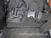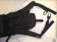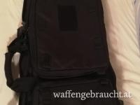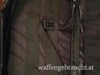High End tactical drag bag (Sturmgewehrtasche) aus schwarzem, extrem widerstandsfähigem Cordura. Mit Wabenschaumstoff gepolstert. Griffe gesteppt vernäht. Heavy duty Reißverschluss, durch Lasche geschützt, zusätzlich gesichert durch 5 verstellbare Gurtbänder mit Schnappverschluss. 2 geräumige Außentaschen mit Reißverschluss, 3-seitig zum Öffnen (eine mit. elastischen Bändern, z. B. zur Aufbewahrung von 4 Großraummagazinen). Innen extra eingearbeitete stoßgeschützte Hinterschaftsicherung. Gurtsicherung über die gesamte Waffenlänge. Extra aufgesetzte wasserdichte Schutzkappe müdungsseitig. Tasche rückseitig mit eingearbeiteten Tragegurten, zur Trageweise als Rucksack. Max nutzbare Innenlänge 105cm.