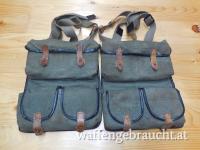 Originale serbische Magazintasche mit Trageriemen für Zastava M76 Scharfschützengewehre. Die Tasche fasst 4 Stück 10er Magazine, Putzzeug sowie Zubehör. Neuwertiger Zustand mit minimalen Lagerspuren, stellenweis leicht fleckig, vollständig und ohne verdeckten Mängeln. Die Abbildungen sind als beispielhaft zu verstehen, da ein paar wenige Tasche in ähnlichem / gleichem Zustand vorhanden, Stückpreis €29.