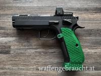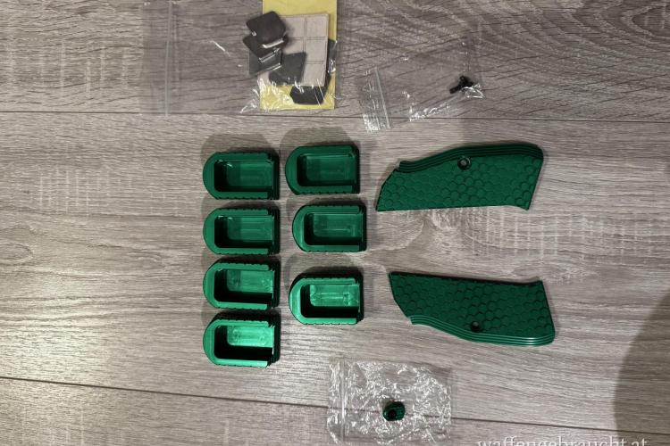 Verkaufe neue Alu Griffschalen für CZ Shadow 2 in Neon Grün mit dazu passendem Magazin Release Knopf sowie 7 Stück Alu Base Pads +2.