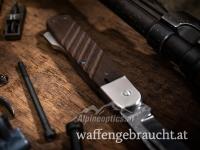 Das Böker 98k-Damast greift verschiedene Designelemente des 98k-Bajonetts auf und ist zudem mit einer einzigartigen Damast-Klinge aus dem Laufstahl der Mauser-Karabiner ausgestattet. Der bemerkenswerte Damast mit 80 Lagen wird für uns von Chad Nichols von Hand im Muster Ripple geschmiedet. Die einzigartige Klinge mit ausgeprägter Fehlschärfe wird per Nagelhau geöffnet und von einem stabilen Backlock zuverlässig arretiert. Die Griffschalen aus heimischem Walnussholz nehmen die diagonal geriffelte Struktur der Bajonettgriffschalen auf und sorgen für sicheren Halt. Unter der Backe aus Stahl wurde zudem der Querstich zum seitlichen Reinigen des Schachtes der Putzstockaufnahme übernommen. Handgefertigt in der Böker Messer-Manufaktur Solingen. Mit edlem Schwebedisplay, Echtheitszertifikat und individueller Seriennummer.