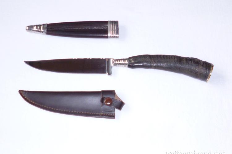 Jagdnicker mit Griff aus Gamshorn, 2 Lederhüllen
