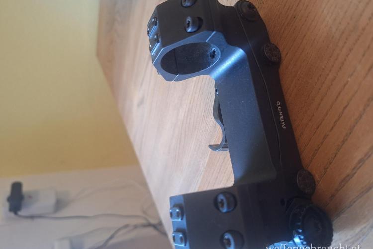 Angeboten wird eine ERA-TAC Blockmontage Gen 2, mit einstellbarer Vorneigung. Die Vorneigung kann in Schritten von 10 MOA, von 0 bis 70 MOA eingestellt werden. Es sind somit Schüsse über weite Distanzen möglich. Schnellverschluss. BH: 25 / Durchmesser Ringe 34 mm