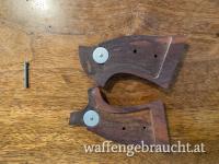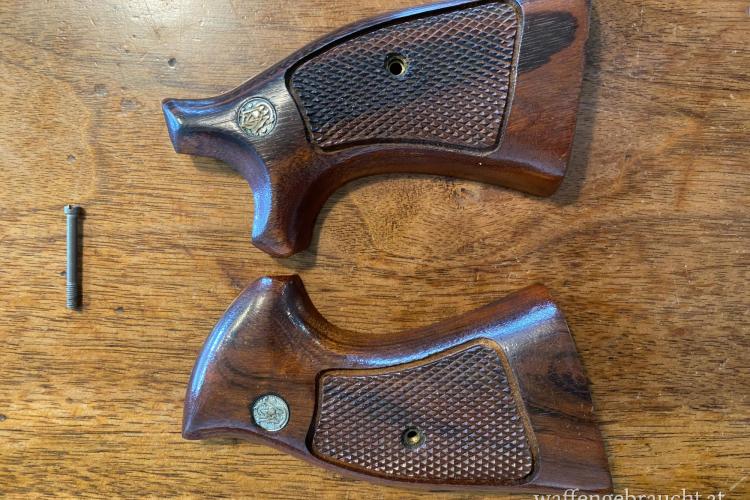 Originale Holzgriffschalen mit eingelassenem S&W-Medaillon für Smith & Wesson Revolver mit K-Frame Square Butt.
