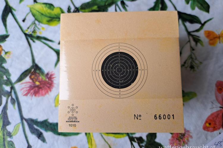 Jede 10er Ringscheibe ist 10 x 10cm groß, verwendbar für Luftgewehr und Armbrust auf eine Distanz von 10m. Abgepackt in 200 Stück Packung mit fortlaufender Nummerierung.