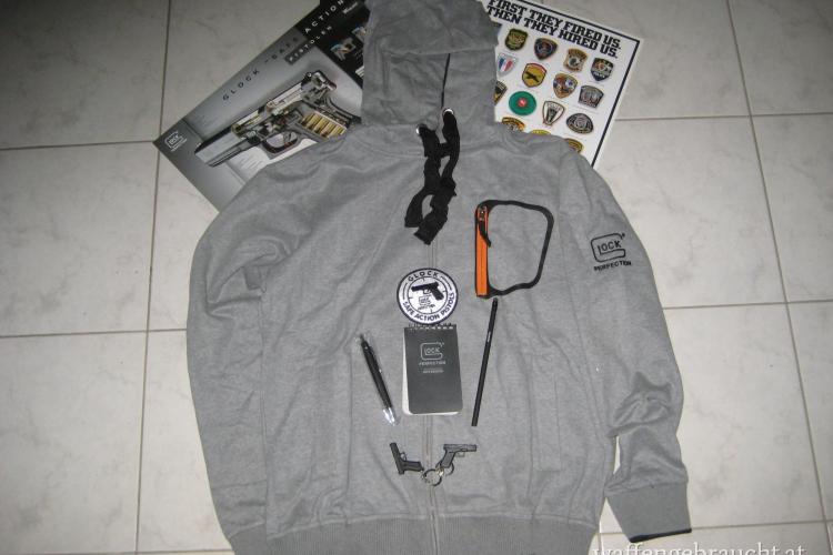 Glock-Set 3 1 Stk. SweaterJacket Gr. M, 1 Stk. Notizblock, 1 Stk. Stoffemblem, 1 Stk. Kugelschreiber, 1 Stk. Bleistift, 2 Stk. Schlüsselanhänger Kunststoff, 2 Stk. Plakate, 1 Stk. Plastiksackerl. € 65,-- Bei Fragen Handy Nr. 0676 9373888